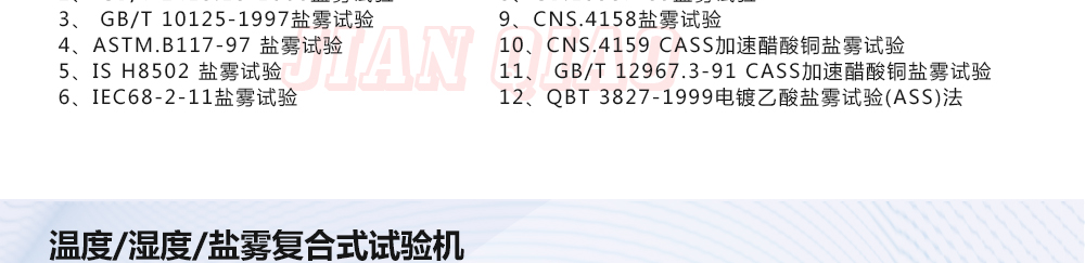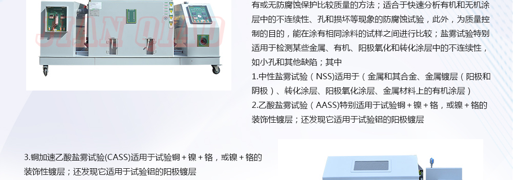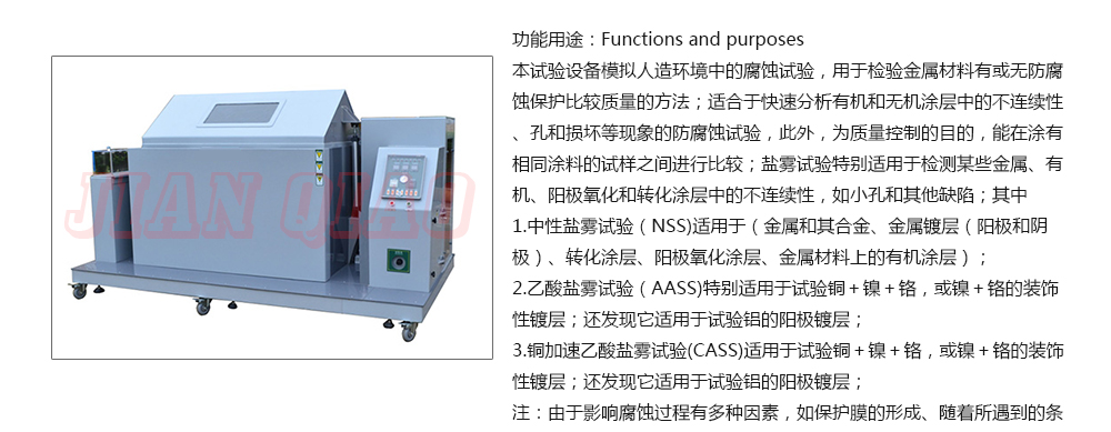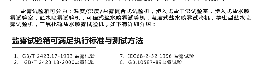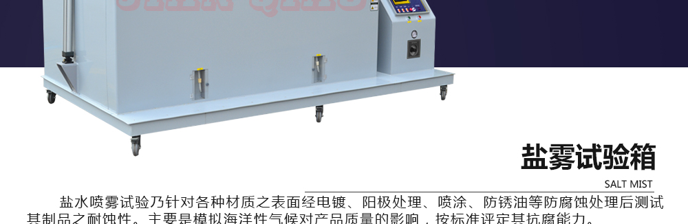 用途:鹽霧試驗箱可分為:溫度/濕度/鹽霧復(fù)合式試驗機,步入式鹽干濕試驗室,步入式鹽水噴霧試驗室,鹽水噴霧試驗機,可程式鹽水噴霧試驗機,電腦式鹽水噴霧試驗機,精密型鹽水噴霧試