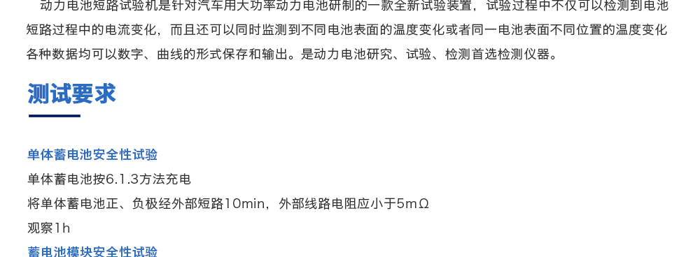 用途:動力電池短路試驗機是針對汽車用大功率動力電池研制的一款全新試驗裝置,試驗過程中不僅可以檢測到電池短路過程中的電流變化,而且還可以同時監測到不同電池表面的溫度變化或