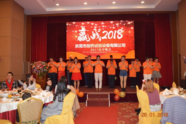 2018年元月26日,劍喬試驗設(shè)備于塘廈匯華酒店成功舉辦了2017年尾牙晚會,會上高朋滿座,劍喬總經(jīng)理在會上發(fā)表致辭,表達了對各位合作伙伴一年以來大力支持的感謝,更是總結(jié)了2017年劍喬公司一年里的收獲及成長,并給優(yōu)秀員工及突出貢獻的人員給予表彰。再對劍喬2018年定下了發(fā)展目標(biāo)及期許,晚會在一片歡樂祥和中進行。