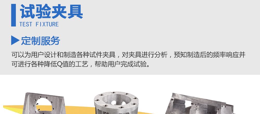 用途:可以為用戶設計和制造各種試件夾具,對夾具進行分析,預知制造后的頻率響應并可進行各種降低Q值的工藝,幫助用戶完成試驗。