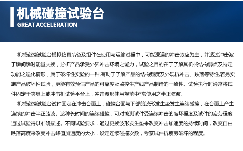 當(dāng)前位置: 首頁 > 振動環(huán)境試驗類 > 沖擊/碰撞試驗臺 >